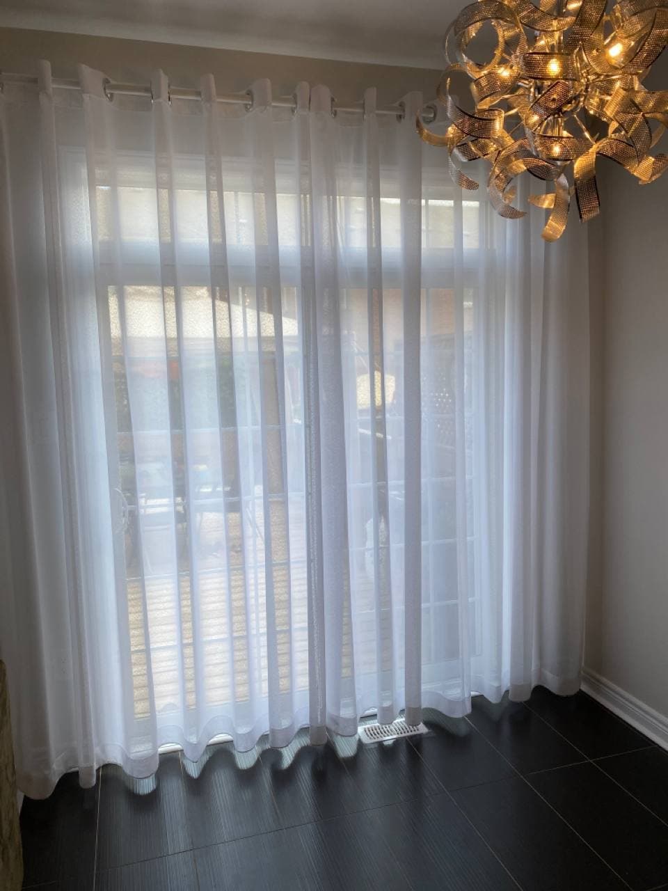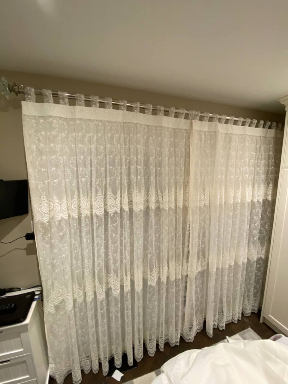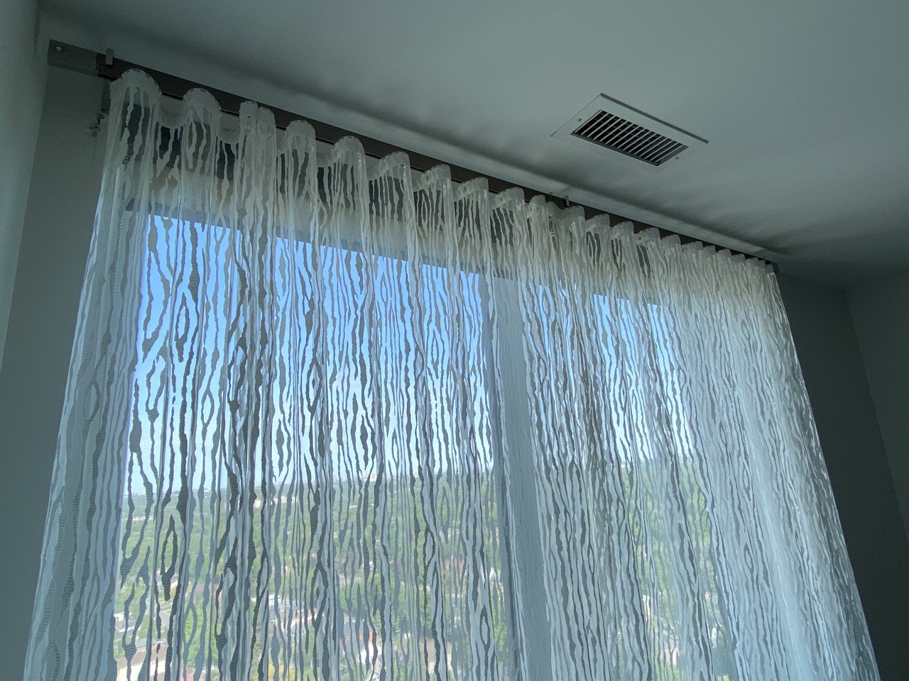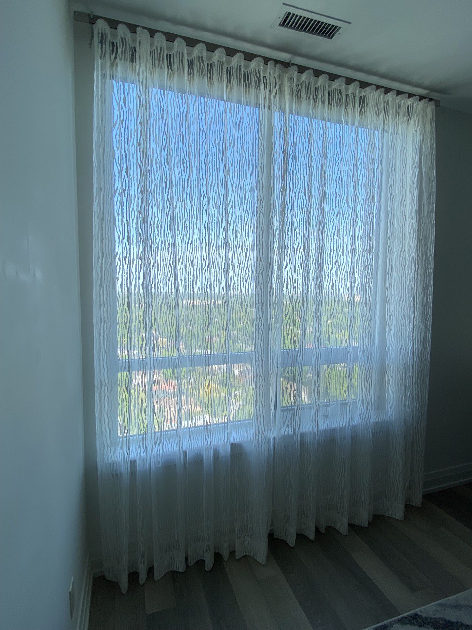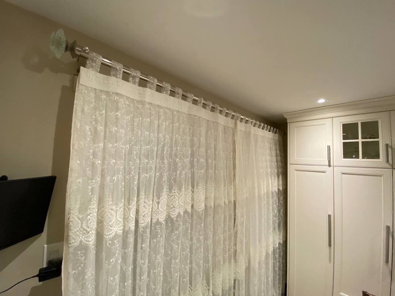A sheer or net curtain is one that is made from translucent fabric, such as a loosely woven polyester voile, silk or nylon made marquisette or ninon, and cotton lace, etc. Sheer curtains allow a majority of light to be transmitted through the fabric, with the fabric weave providing a basic level of UV protection while retaining maximum visibility outward through the curtain. Sheer curtains are sometimes referred to as “privacy curtains” in reference to their screening abilities; during the day most sheer fabrics will allow people inside the home to see the outside view while preventing people outside the home from seeing directly into the home. Due to the loose weave in sheer fabrics, these types of curtains offer very little in the way of heat insulation.