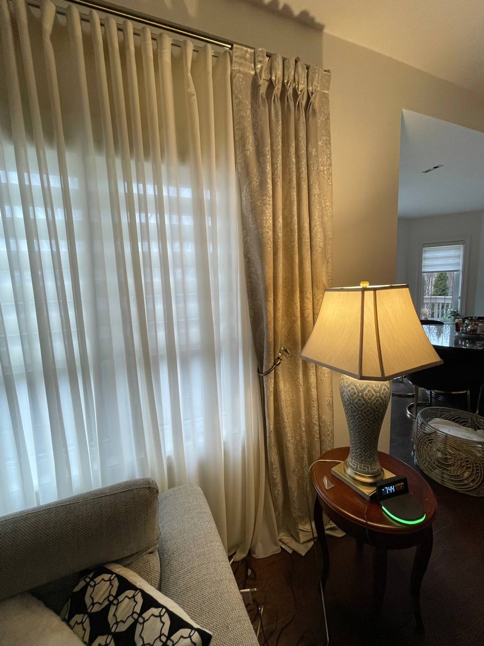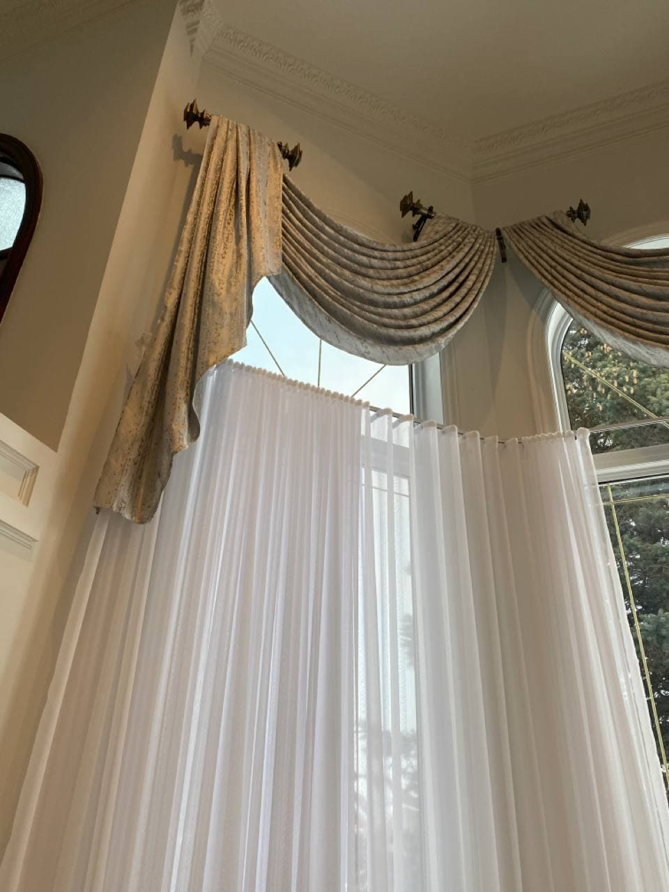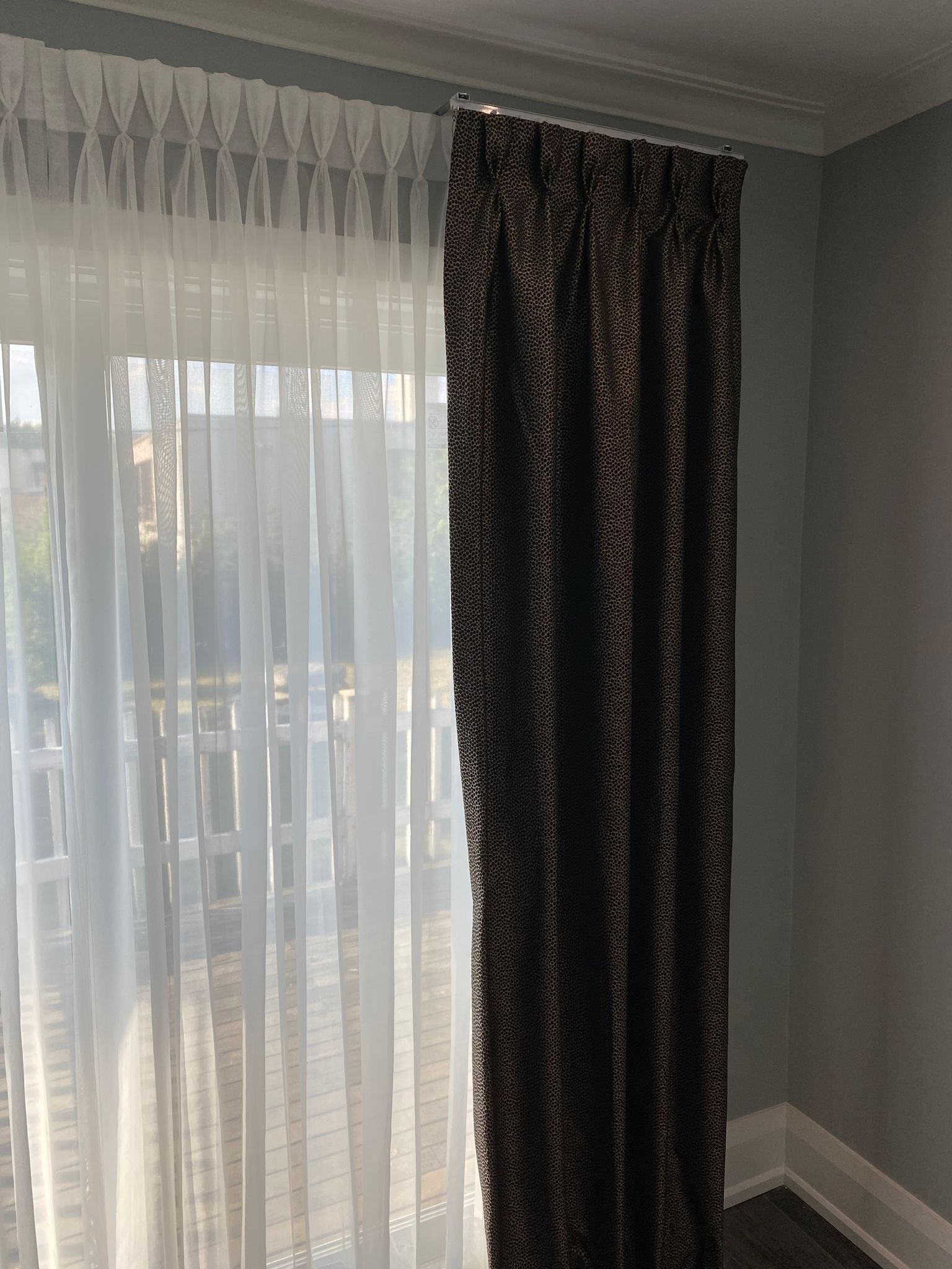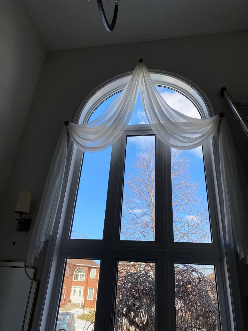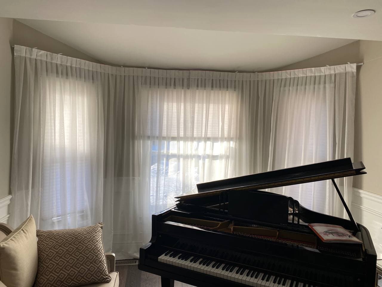 A sheer or net curtain is one that is made from translucent fabric, such as a loosely woven polyester voile, silk or nylon made marquisette or ninon, and cotton lace, etc. Sheer curtains allow a majority of light to be transmitted through the fabric, with the fabric weave providing a basic level of UV protection while retaining maximum visibility outward through the curtain. Sheer curtains are sometimes referred to as “privacy curtains” in reference to their screening abilities; during the day most sheer fabrics will allow people inside the home to see the outside view while preventing people outside the home from seeing directly into the home. Due to the loose weave in sheer fabrics, these types of curtains offer very little in the way of heat insulation.